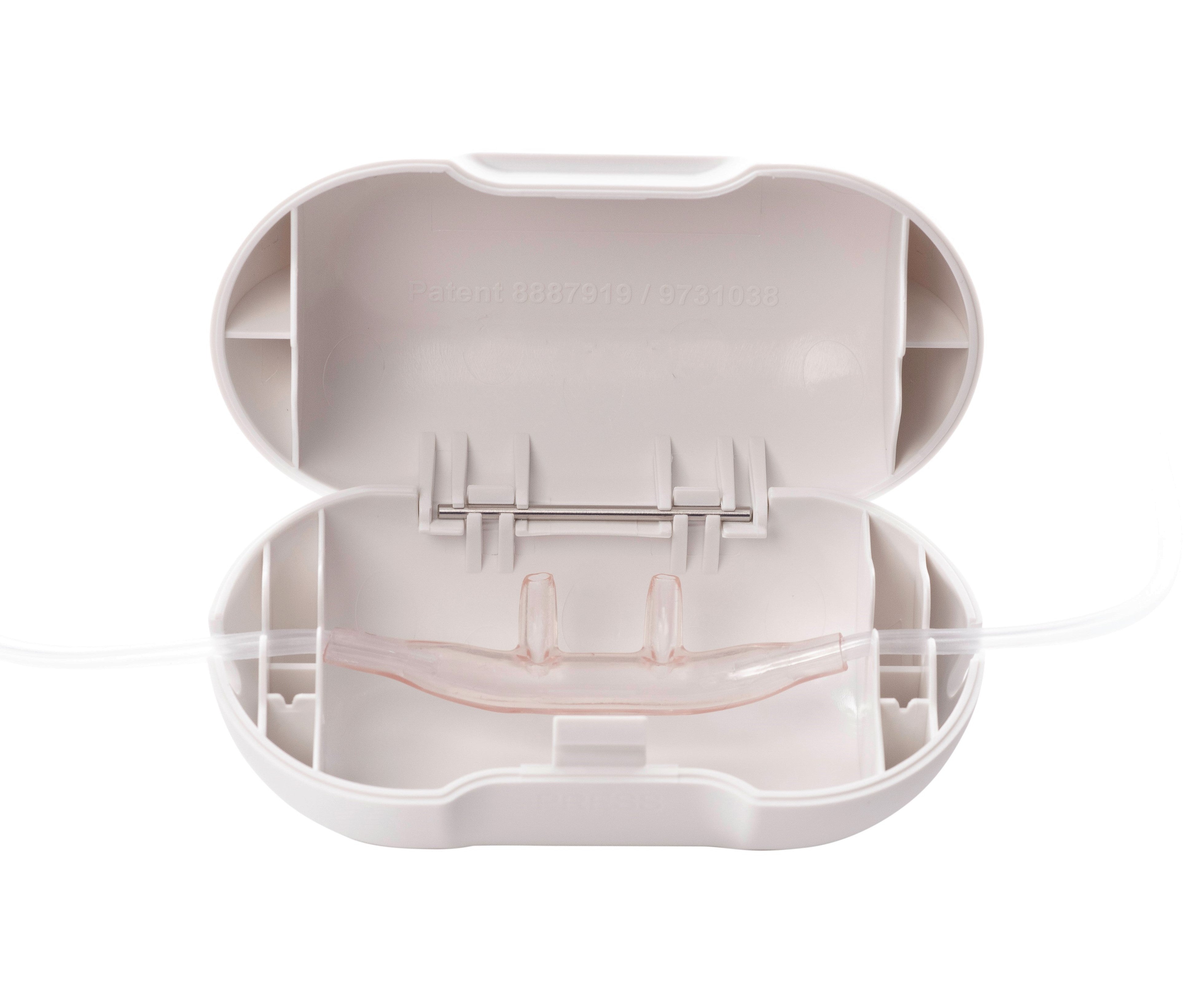 Stop risking infection by leaving nasal cannulas unprotected or storing them in plastic bags! 94% of home health care patients surveyed say they want a better solution for storing their nasal oxygen cannulas. Our innovative device not only helps keep the nasal cannula clean, but it also saves money by eliminating the need to frequently replace the nasal cannula.